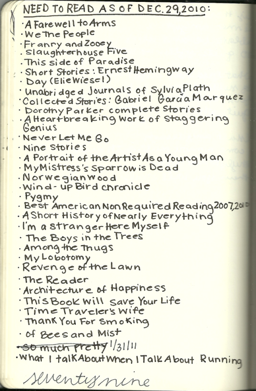 i started the list almost two years ago when i was visiting my abuela in new york and my book obsession almost cost me an extra $30 for my checked luggage. then it cost me my brand new urban outfitters bag, but whatever. i have since moved on (and purchased a more durable bag!) from that experience and am trying to stay on track with the list. the first one i started in new york one night when it was storming (which was terrifying since we were on the 9th floor and the whole building was swaying) and the second one is the more accurate/neat one i made at the end of december.